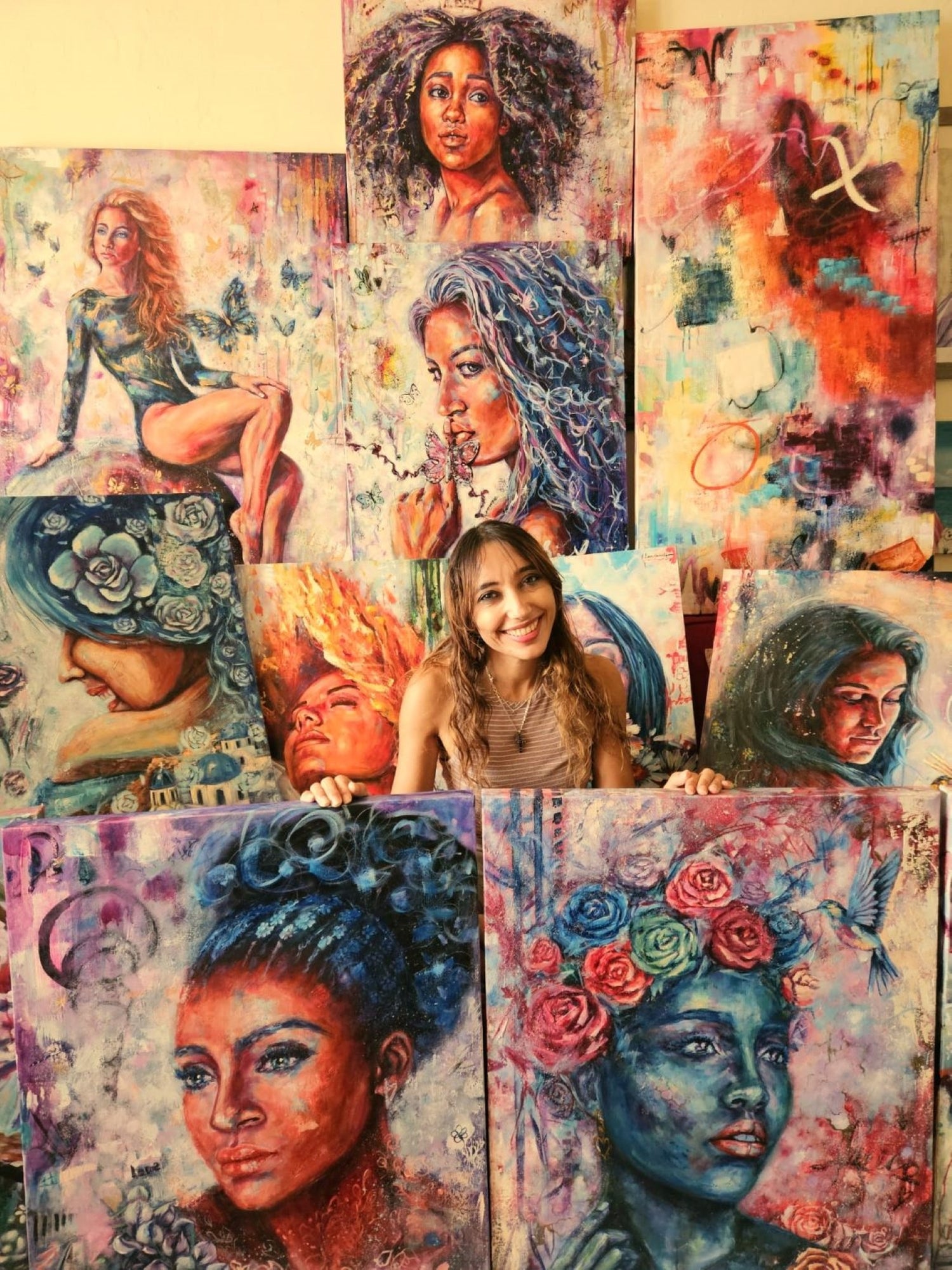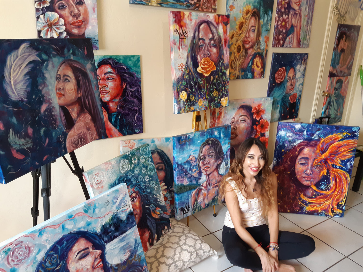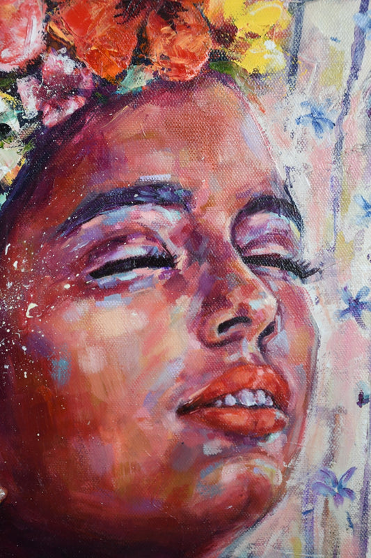 Through my paintings I want to honor the Power that people have, especially Women, to live life, face challenges, fight for what they want, and protect what is important to them. As well as honor the resilience they possess in a romantic, artistic and colorful way.