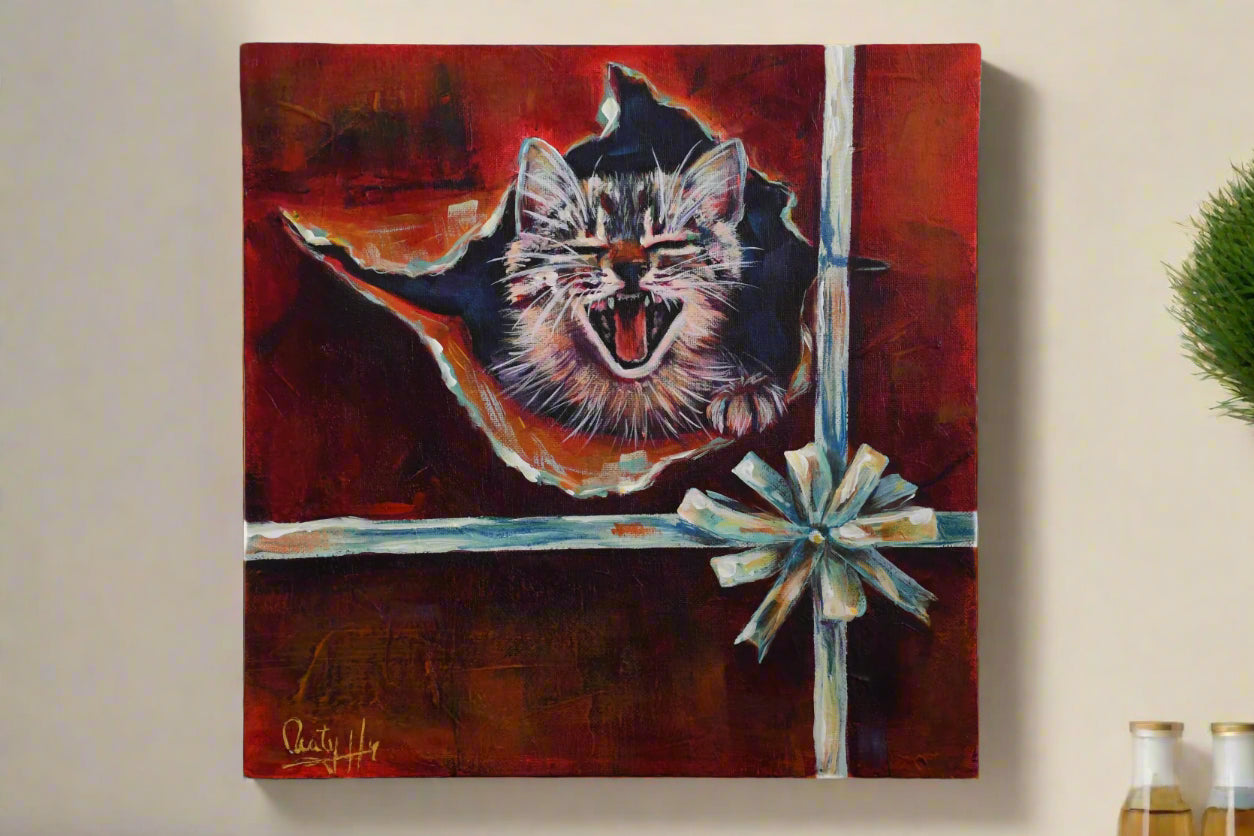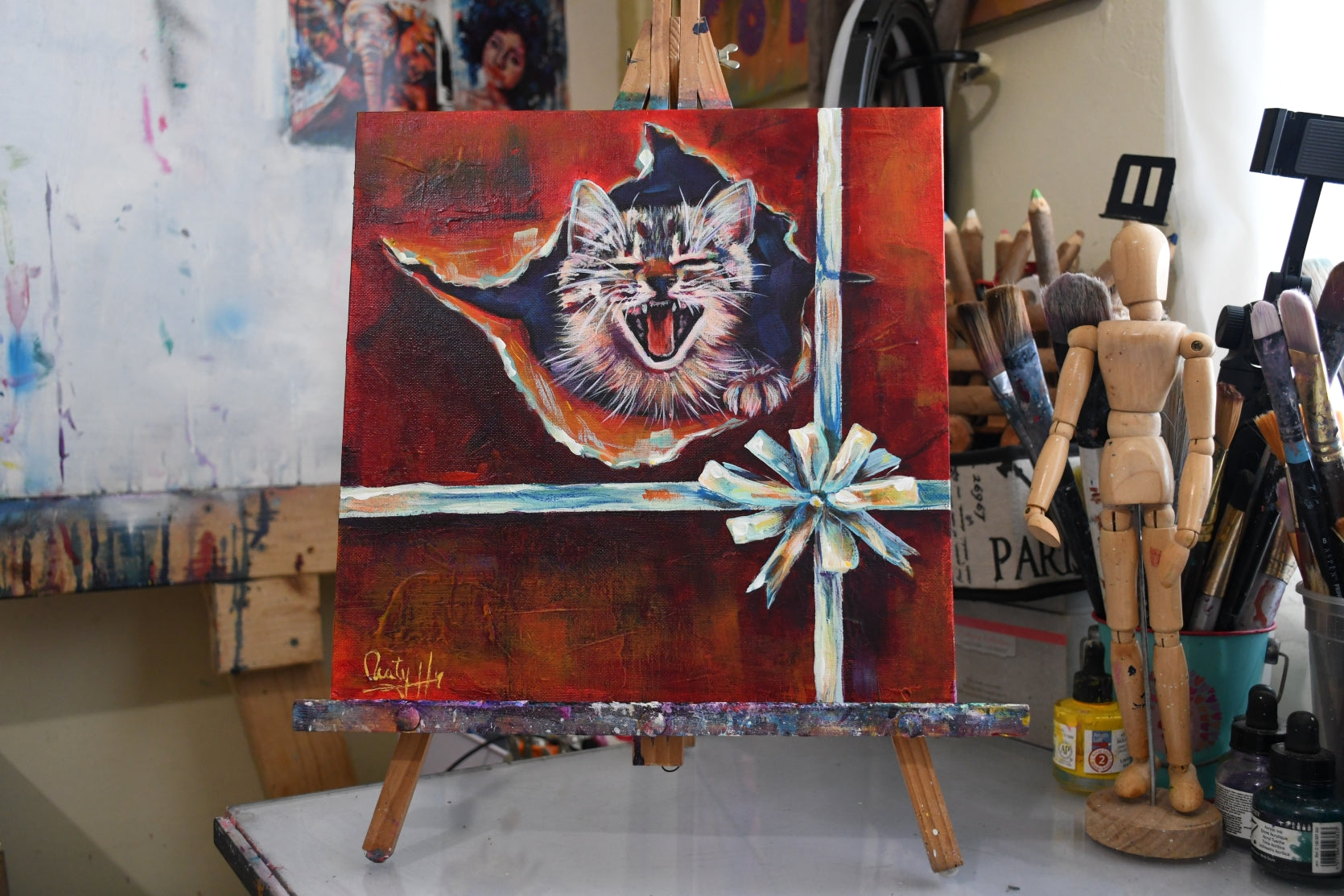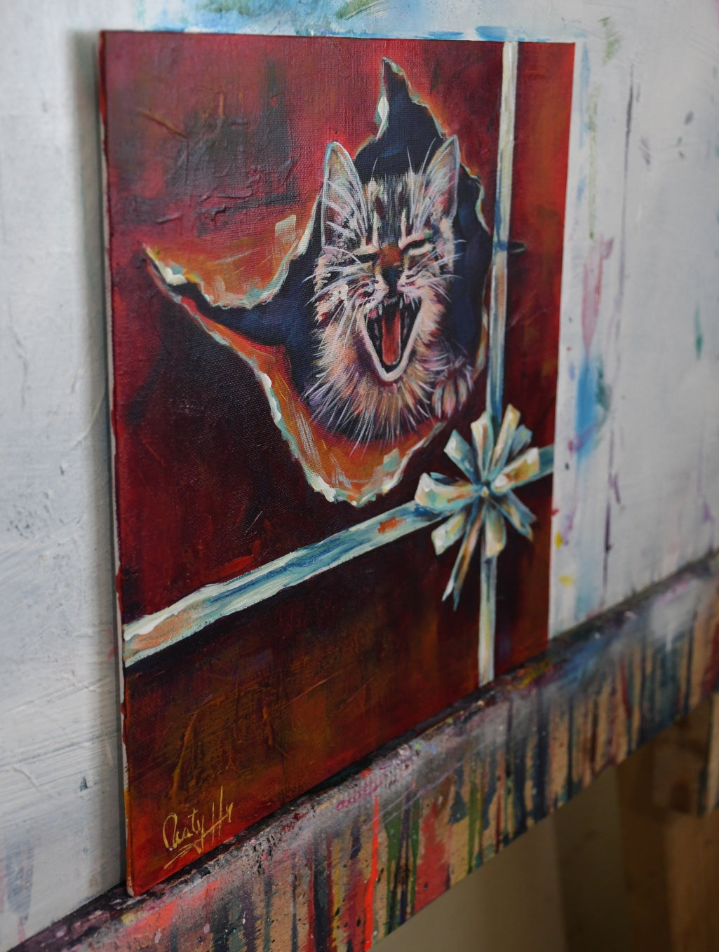A Wonderful Surprise...When I started painting this piece, I suddenly came up with the idea of a kitten breaking the paper to come out.