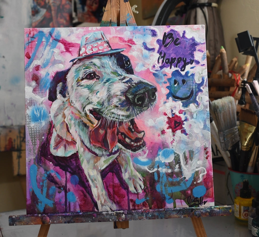 Today is the turn of this gentleman. He is my daughter's friend's pet. It is the second time I paint him and I love to paint him with his tongue out.